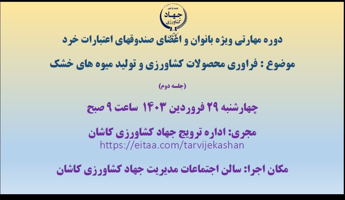 جهت اطلاع بيشتر با اداره ترويج و آموزش کشاورزي مديريت جهاد کشاورزي کاشان مراجعه و يا با شماره تلفن 03155451616 داخلي 245 تماس حاصل نماييد. |